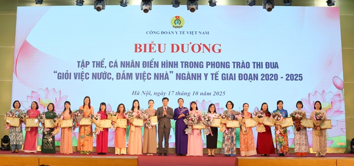 Kết thúc hội nghị, lãnh đạo Tổng Liên đoàn Lao động Việt Nam và Công đoàn Y tế Việt Nam đã trao tặng Cờ thi đua, Bằng khen cho các tập thể, cá nhân điển hình tiên tiến trong phong trào thi đua “Giỏi việc nước, đảm việc nhà” giai đoạn 2020 - 2025.