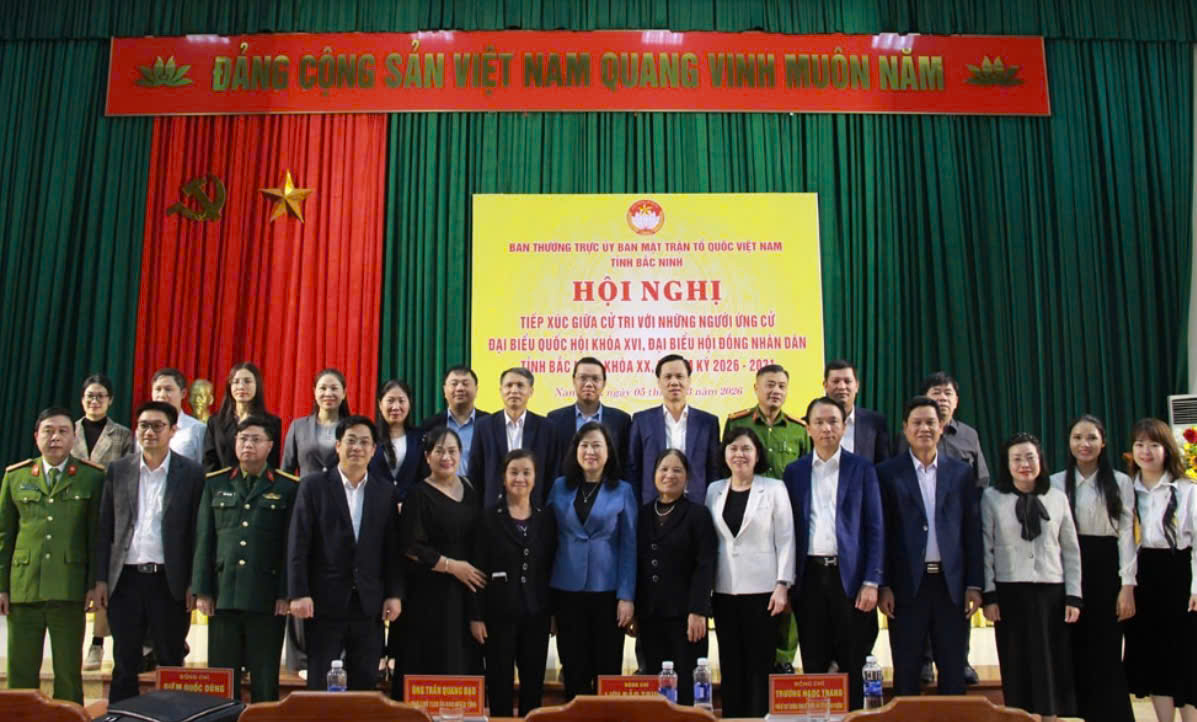 Thực hiện quy định của Luật Bầu cử Đại biểu Quốc hội (ĐBQH) và Đại biểu Hội đồng nhân dân (HĐND), ngày 5/3, tại phường Vũ Ninh, phường Nam Sơn, Ban Thường trực Ủy ban Mặt trận Tổ quốc Việt Nam tỉnh Bắc Ninh tổ chức hội nghị tiếp xúc giữa cử tri với những người ứng cử ĐBQH khóa XVI và đại biểu HĐND tỉnh Bắc Ninh khóa XX, nhiệm kỳ 2026–2031.