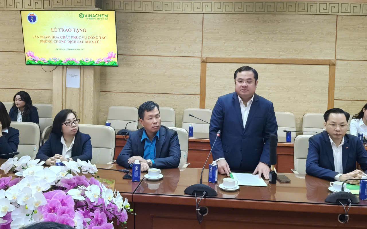 Phát biểu tại sự kiện, ông Phùng Quang Hiệp, Chủ tịch Hội đồng thành viên Tập đoàn Hoá chất Việt Nam chia sẻ, tin tức trong những ngày qua cho thấy mưa lũ tại các tỉnh miền Trung và Tây nguyên đã gây thiệt hại nặng cho người dân. Tập đoàn Hóa chất Việt Nam luôn xác định trách nhiệm xã hội là một phần trong chiến lược phát triển bền vững. Thực hiện trách nhiệm với xã hội, với tinh thần nhân ái, Tập đoàn Hóa chất gửi tặng Bộ Y tế 20 tấn hóa chất khử khuẩn nguồn nước, khử khuẩn môi trường, để đồng hành cùng Bộ Y tế trong công tác phòng chống dịch bệnh sau mưa lũ.