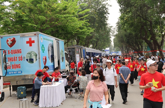 Gần 2.000 đại biểu đã tham dự Lễ Mít tinh phát động Ngày Sức khoẻ toàn dân 7/4 tại Hà Nội 05/04/2026 05:42 PM | T5g.org.vn - “Chủ động phòng bệnh - Vì một Việt Nam khỏe mạnh” là chủ đề Lễ Mít tinh phát động Ngày Sức khoẻ toàn dân 7/4 diễn ra sáng 5/4, tại Công viên Thống Nhất, Hà Nội. Chương trình do Ban Tuyên giáo và Dân vận Trung ương, Bộ Y tế phối hợp tổ chức. Đây là lần đầu tiên Ngày Sức khỏe toàn dân được triển khai đồng bộ trên phạm vi cả nước. Tham dự Ngày Sức khoẻ toàn dân có đồng chí Trịnh Văn Quyết, Ủy viên Bộ Chính trị, Bí thư Trung ương Đảng, Trưởng Ban Tuyên giáo và Dân vận Trung ương; đồng chí Hồ Quốc Dũng, Ủy viên Ban Chấp hành Trung ương Đảng, Phó Thủ tướng Chính phủ; đồng chí Đào Hồng Lan, Ủy viên Ban Chấp hành Trung ương Đảng, Bộ trưởng Bộ Y tế. Sự kiện có tham gia của các Bộ, ban, ngành, địa phương, các tổ chức chính trị - xã hội, cơ sở y tế và đông đảo người dân. Một số hình ảnh tại buổi lễ diễn ra sáng 5/4, tại Công viên Thống Nhất, Hà Nội do Nhóm PV T5G thực hiện Bộ trưởng Bộ Y tế Đào Hồng Lan phát biểu khai mạc Đồng chí Trịnh Văn Quyết, Ủy viên Bộ Chính trị, Bí thư Trung ương Đảng, Trưởng Ban Tuyên giáo và Dân vận Trung ương phát biểu chỉ đạo tại buổi lễ Các đại biểu thực hiện nghi thức phát động Ngày Sức khỏe toàn dân Các đại biểu thực hiện nghi thức chào cờ tại buổi lễ Quang cảnh buổi lễ Văn nghệ tại buổi lễ Các đại biểu hưởng ứng tham gia hoạt động đi bộ quanh khu vực Công viên Thống Nhất Bộ trưởng Đào Hồng Lan cùng các đại biểu đi thăm hỏi, động viện người dân được khám, tư vấn sức khoẻ tại chương trình và chụp ảnh lưu niệm cùng các thầy thuốc trẻ, Hội thầy thuốc trẻ Việt Nam tại chương trình Người dân tham gia khám, tư vấn sức khỏe TS. Angela Pratt, Trưởng đại diện WHO tại Việt Nam chụp ảnh lưu niệm cùng đại biểu tham dự buổi lễ Rất đông các bạn trẻ đã đến tham dự chương trình