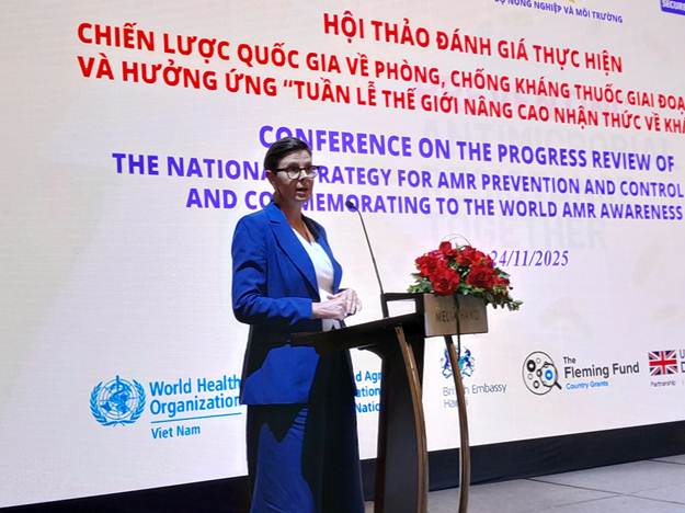 Tại Hội thảo, Tiến sỹ Angela Pratt, Trưởng Đại diện WHO tại Việt Nam cam kết WHO sẽ tiếp tục đồng hành cùng Chính phủ Việt Nam để mở rộng giám sát vi sinh, tăng cường năng lực phòng xét nghiệm và thúc đẩy sử dụng kháng sinh hợp lý.