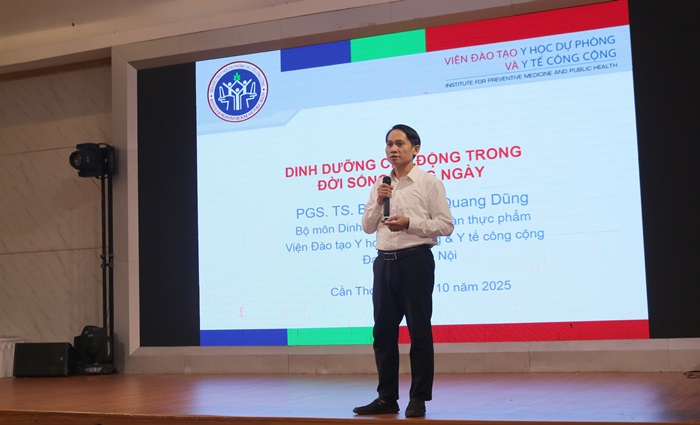 Tại Hội thảo, PGS.TS.BS. Nguyễn Quang Dũng đã trình bày chuyên sâu về dinh dưỡng chủ động. Ông đã chia sẻ những lời khuyên rất rõ ràng, dễ hiểu để chị em phụ nữ có thể áp dụng được ngay như: Hiểu rõ tình trạng dinh dưỡng và nhu cầu năng lượng của bản thân; Ăn đa dạng - cân đối - vừa đủ, ưu tiên thực phẩm tươi, ít chế biến; Giảm muối, đường, chất béo bão hòa; tăng rau, trái cây, ngũ cốc nguyên hạt, cá, đậu đỗ; Duy trì hoạt động thể lực hằng ngày, ngủ đủ, hạn chế rượu bia và thuốc lá; Áp dụng linh hoạt mô hình ăn lành mạnh: Địa Trung Hải, DASH, hoặc ăn chay hợp lý. Cuối phần trình bày của mình, ông nhấn mạnh: “Dinh dưỡng chủ động không chỉ để phòng bệnh - mà để sống khỏe, sống vui và sống có chất lượng”.