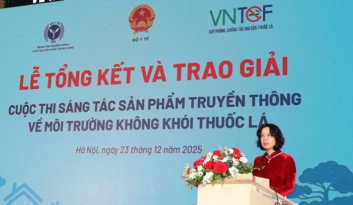 Phát biểu tại buổi Lễ tổng kết và trao giải, PGS.TS. Nguyễn Thị Liên Hương, Thứ trưởng Bộ Y tế đánh giá cao sáng kiến của Trung tâm Truyền thông - Giáo dục sức khỏe Trung ương phối hợp với Quỹ Phòng, chống tác hại của thuốc lá đã tổ chức Cuộc thi ý nghĩa này trong năm 2025. Cuộc thi không chỉ là sân chơi sáng tạo mà còn là đợt sinh hoạt chuyên môn sâu rộng trong hệ thống truyền thông y tế, đặc biệt tại tuyến cơ sở. Thứ trưởng cũng đề nghị Trung tâm Truyền thông - Giáo dục sức khỏe Trung ương và Quỹ Phòng, chống tác hại của thuốc lá sớm xây dựng kế hoạch khai thác, sử dụng hiệu quả các sản phẩm của Cuộc thi; ưu tiên truyền thông rộng rãi các tác phẩm đạt giải trên các phương tiện thông tin đại chúng và nền tảng số. Trung tâm Kiểm soát bệnh tật tỉnh, thành phố, đặc biệt là các đơn vị đạt giải, tiếp tục phát huy tinh thần chủ động, sáng tạo; coi truyền thông phòng, chống tác hại của thuốc lá là nhiệm vụ thường xuyên, lâu dài; mỗi cán bộ y tế thực sự là một tuyên truyền viên tích cực tại cộng đồng.