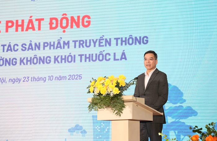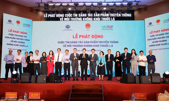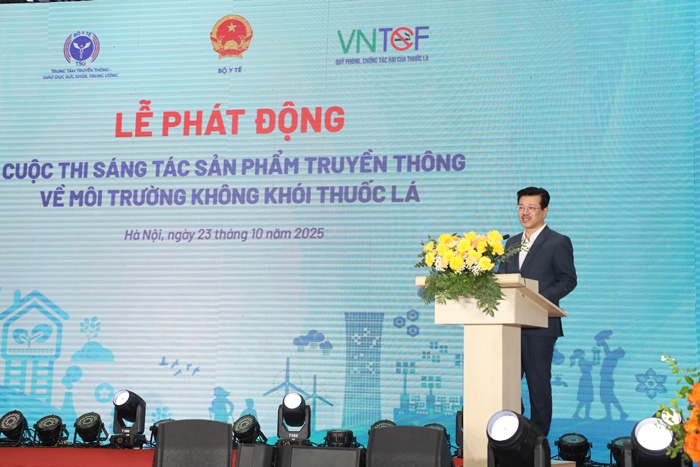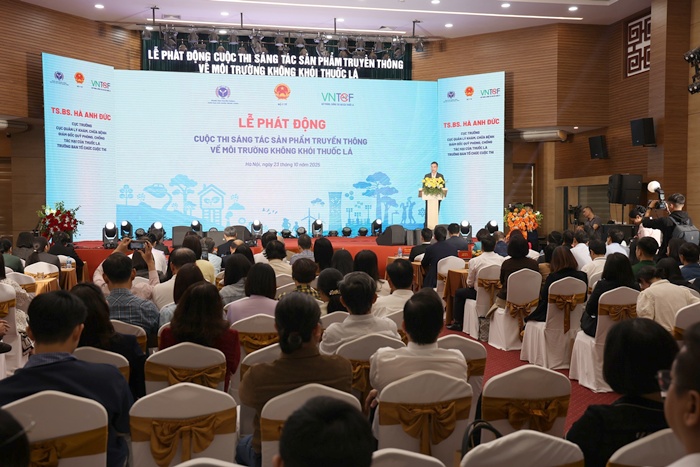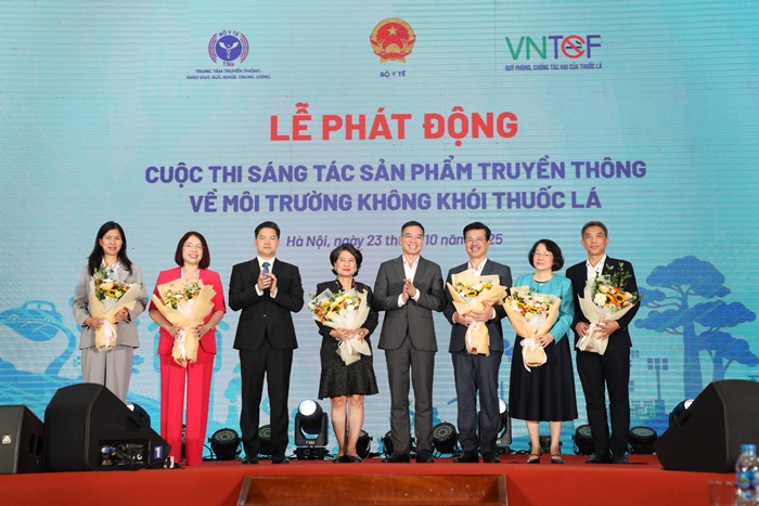 Một số hình ảnh tại Lễ phát động Cuộc thi “Sáng tác sản phẩm truyền thông về môi trường không khói thuốc lá” 23/10/2025 03:06 PM | T5g.org.vn - Sáng ngày 23/10, tại Hà Nội, Bộ Y tế, Trung tâm Truyền thông - Giáo dục sức khỏe Trung ương phối hợp với Quỹ Phòng, chống tác hại của thuốc lá tổ chức Lễ phát động Cuộc thi “Sáng tác sản phẩm truyền thông về môi trường không khói thuốc lá” trên phạm vi toàn quốc. Dưới đây là một số hình ảnh được ghi lại tại Lễ phát động: TS. BS. Vũ Mạnh Hà, Ủy viên dự khuyết Trung ương Đảng, Thứ trưởng Thường trực Bộ Y tế dự và phát biểu chỉ đạo tại buổi lễ TS. BS. Vũ Mạnh Hà, Thứ trưởng Thường trực Bộ Y tế và TS.BS. Hà Anh Đức tặng hoa chúc mừng Ban Giám khảo cuộc thi Các đại biểu tham dự Lễ phát động TS.BS. Hà Anh Đức, Cục trưởng Cục Quản lý khám, chữa bệnh, Bộ Y tế; Giám đốc Quỹ Phòng, chống tác hại của thuốc lá; Trưởng Ban Tổ chức Cuộc thi phát biểu tại buổi lễ Nhà báo Vũ Mạnh Cường, Giám đốc Trung tâm Truyền thông - Giáo dục sức khỏe Trung ương, đồng Trưởng Ban Tổ chức Cuộc thi, Trưởng Ban Giám khảo Cuộc thi phát biểu tại Lễ phát động Nhiều bạn sinh viên đã tham dự Lễ phát động Quang cảnh Lễ phát động Các đại biểu chụp ảnh lưu niệm Hoàng Hiền