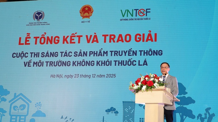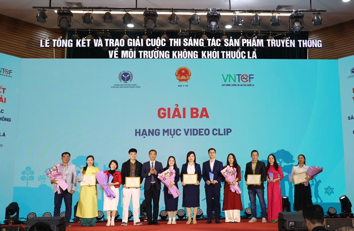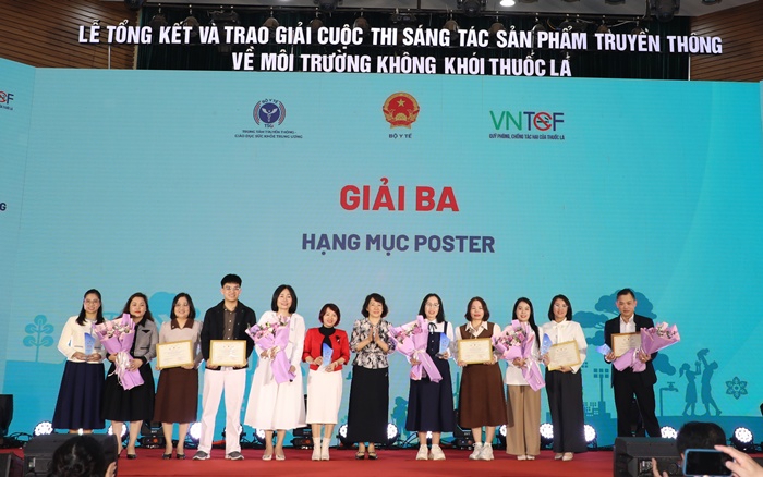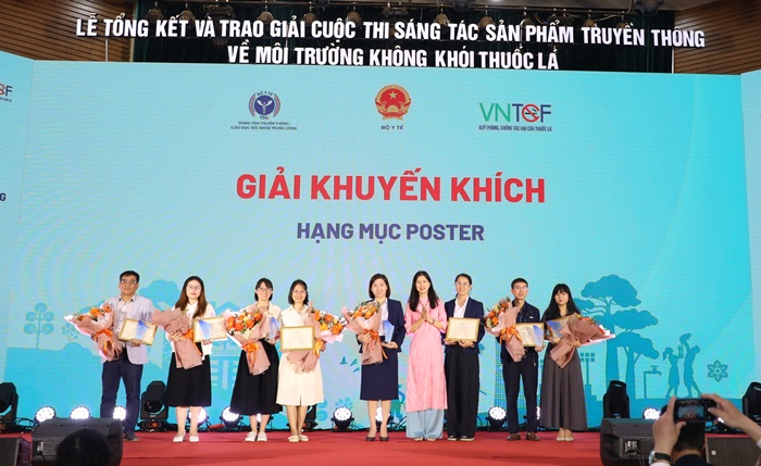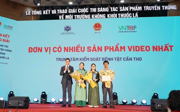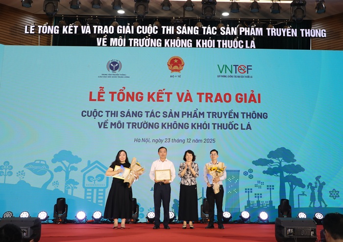 Một số hình ảnh tại Lễ tổng kết và trao giải Cuộc thi “Sáng tác sản phẩm truyền thông về môi trường không khói thuốc lá” 23/12/2025 12:13 PM | T5g.org.vn - Ngày 23/12, tại Hà Nội, Trung tâm Truyền thông - Giáo dục sức khỏe Trung ương thuộc Bộ Y tế phối hợp với Quỹ Phòng, chống tác hại của thuốc lá đã long trọng tổ chức Lễ Tổng kết và trao giải Cuộc thi “Sáng tác sản phẩm truyền thông về môi trường không khói thuốc lá”. Chỉ sau hơn 01 tháng phát động, cuộc thi đã nhận được sự hưởng ứng vượt kỳ vọng với 258 tác phẩm dự thi gửi về từ 27/34 CDC các tỉnh, thành phố. Trong đó bao gồm: 219 poster, 39 video clip. Tỷ lệ sản phẩm hợp lệ đạt tới 94,6%, cho thấy sự đầu tư nghiêm túc, bài bản và tuân thủ tốt thể lệ của các đơn vị dự thi. Một số hình ảnh tại buổi lễ sáng ngày 23/12/2025 tại Hà Nội: Hoàng Hiền thực hiện