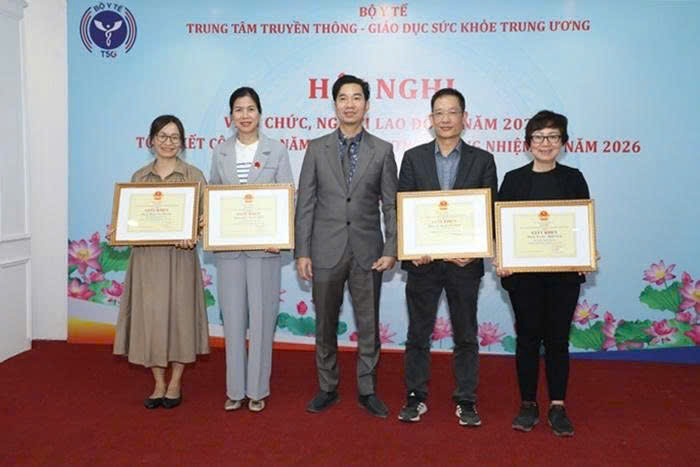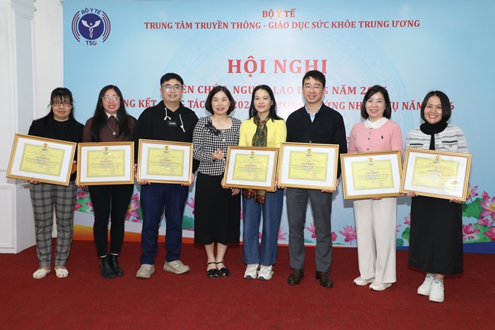 Tại Hội nghị, một số tập thể, cá nhân vinh dự được nhận Bằng khen của Bộ trưởng Bộ Y tế vì thành tích xuất sắc trong hoạt động: Kỷ niệm 70 năm Ngày Thầy thuốc Việt Nam 27/2; Triển lãm A80 và xây dựng chương trình mục tiêu quốc gia (Tập thể: Trung tâm và Phòng Thông tin - Báo chí và 7 cá nhân). Lãnh đạo Trung tâm cũng đã trao tặng Giấy khen của Giám đốc Trung tâm cho 04 tập thể (Phòng Tổ chức - Hành chính, Phòng Kế hoạch - Tài chính, Phòng Thông tin - Báo chí và Phòng Giáo dục sức khoẻ), 21 cá nhân thuộc Trung tâm vì đã có nhiều thành tích xuất sắc trong công tác truyền thông giáo dục sức khoẻ năm 2025; tặng Danh hiệu Chiến sĩ thi đua cơ sở của Trung tâm Truyền thông - GDSK Trung ương cho 03 cá nhân. Một số tập thể, cá nhân cũng được Giám đốc Trung tâm tặng Giấy khen đột xuất tại hội nghị lần này. Ban chấp hành Công đoàn Trung tâm cũng đã trao tặng Giấy khen cho 7 tập thể và 21 cá nhân có thành tích xuất sắc trong công tác Công đoàn năm 2025.