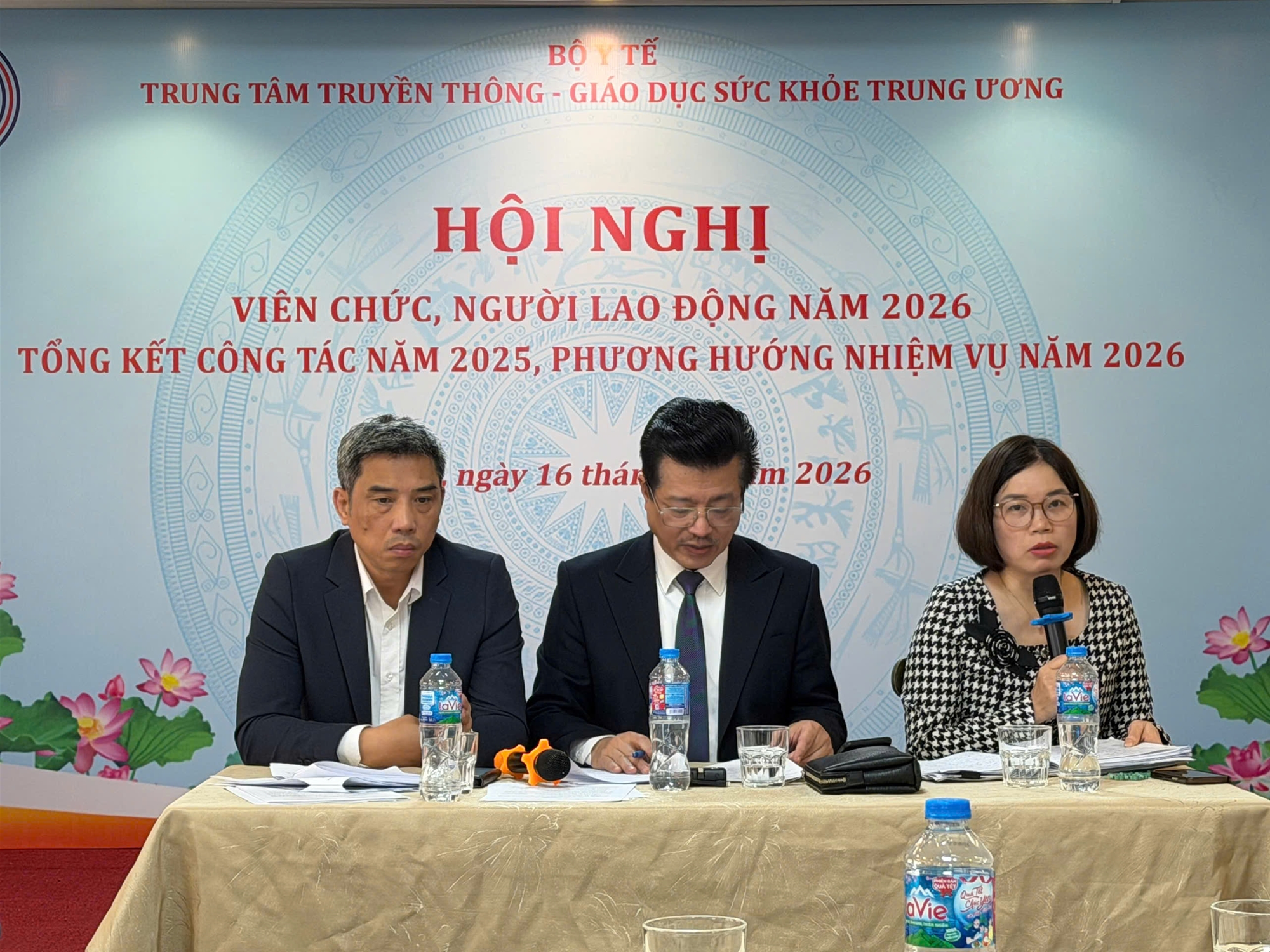Báo cáo về kết quả hoạt động năm 2025, thay mặt lãnh đạo Trung tâm, Phó Giám đốc Trung tâm Hoàng Thị Khánh Phương cho biết: Năm qua, Trung tâm đã tổ chức triển khai hiệu quả nhiều hoạt động nổi bật như: đẩy mạnh hoạt động truyền thông, giáo dục sức khỏe trên các ấn phẩm của Trung tâm với việc cử cán bộ tham dự, thu thập, ghi hình, lưu trữ thông tin, viết tin, bài, ảnh về các sự kiện lớn của ngành, tháp tùng lãnh đạo Bộ, lãnh đạo các Vụ/Cục, lãnh đạo Trung tâm đi cơ sở; Thực hiện các hoạt động đưa tin, bài về hoạt động chung của ngành Y tế, đặc biệt là công tác phòng, chống dịch, phòng, chống tác hại của thuốc lá, tiêm chủng mở rộng, ứng phó với thiên tai, hiến máu nhân đạo… Đặc biệt là tổ chức thành công nhiều sự kiện lớn như: Gian trưng bày của Bộ Y tế tại Triển lãm thành tựu đất nước nhân 80 năm Quốc khánh Nước Cộng hoà Xã hội Chủ nghĩa Việt Nam; chuỗi sự kiện kỷ niệm 70 năm Ngày Thầy thuốc Việt Nam, 100 năm Ngày Báo chí Cách mạng Việt Nam 21/6...; tuyên truyền về Đại hội Đảng Bộ Bộ Y tế, Đại hội thi đua yêu nước ngành Y tế…