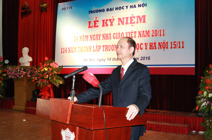 Phát biểu tại buổi lễ, PGS.TS. Nguyễn Đức Hinh, Hiệu trưởng nhà trường gửi lời cảm ơn sâu sắc tới các thế hệ thầy, cô đã đóng góp hết mình vì sự nghiệp “trồng người” trong lĩnh vực y tế và cho sự phát triển của Trường Đại học Y Hà Nội hôm nay. PGS.TS. Nguyễn Đức Hinh cho biết thêm, tới đây, Trường sẽ tiếp tục hoàn thiện mô hình đại học khoa học sức khỏe với các trường thành viên, như: đại học Y, đại học Răng Hàm Mặt, đại học Y tế công cộng và Y học dự phòng, đại học Điều dưỡng, đại học Y học cổ truyền...; từng bước thực hiện tự chủ đại học theo chỉ đạo của Chính phủ.