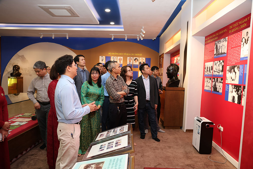 Tại phòng Truyền thống Bộ Y tế, các đoàn đã được nghe giới thiệu về quá trình hình thành và phát triển của ngành y tế qua từng thời kỳ, từ những năm tháng kháng chiến gian khó đến giai đoạn xây dựng và hội nhập quốc tế. Những hình ảnh tư liệu quý, hiện vật lịch sử, cùng các câu chuyện về sự hy sinh thầm lặng và những đóng góp to lớn của các thế hệ thầy thuốc đã để lại nhiều xúc động và tự hào cho các thành viên tham quan.